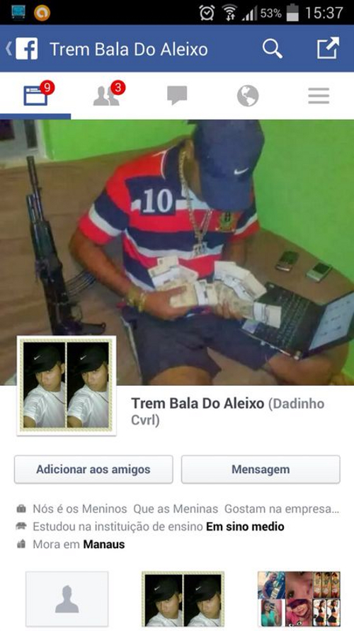 Erison Borges de Souza, que se autodenominava ‘Trem Bala do Aleixo’ no Facebook, foi preso sob a acusação de fazer apologia ao crime. As provas são as fotos de armas de uso restrito da polícia em redes sociais.