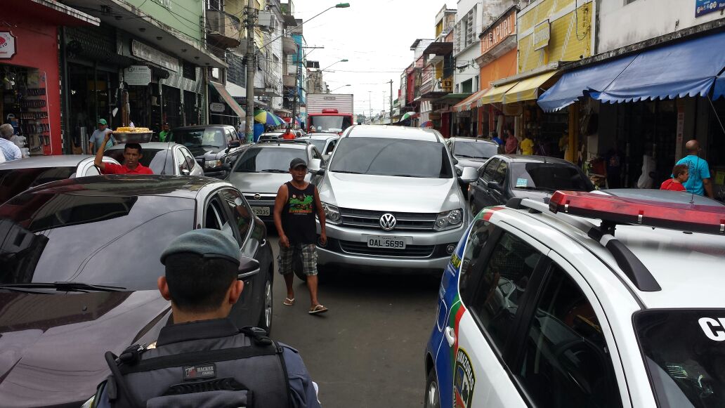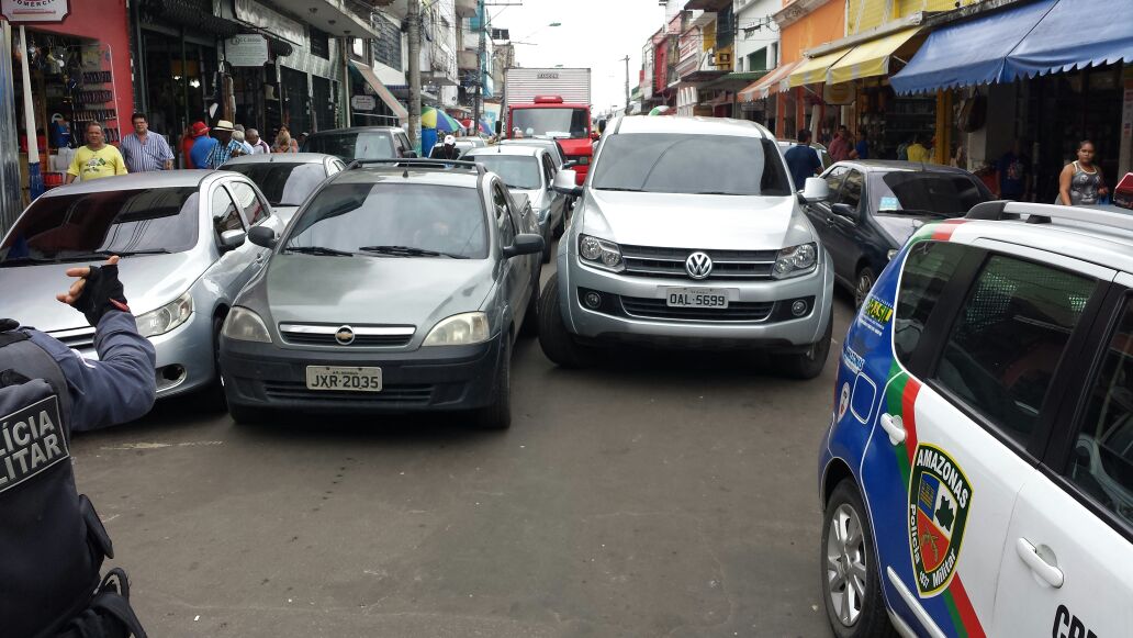 MANAUS - A Polícia teve de ser acionada e logo em seguida reforçada com o Manaustrans na manhã desta quarta-feira (1), após um motorista estacionar seu carro no meio da rua Barão de São Domingos, no Centro.