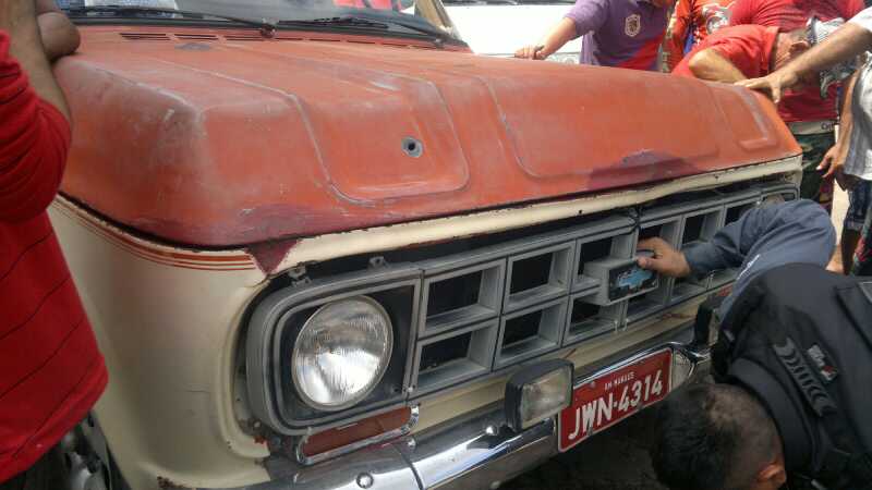 Dos quatro tiros disparados pelo policial, dois acertaram o assaltante, um terceiro atingiu a dianteira de uma camionete, veja foto.