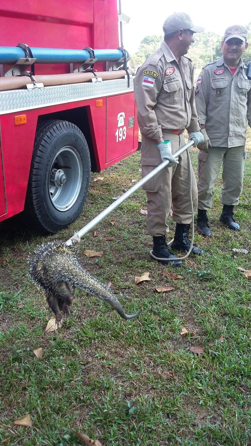 Porco espinho é resgatado por bombeiros em Itacoatiara