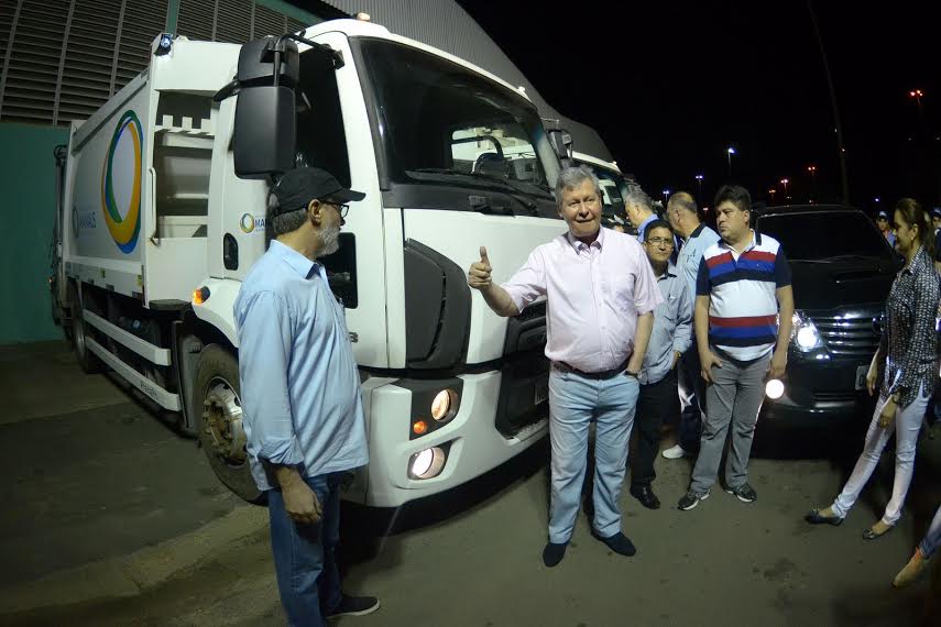 O prefeito de Manaus, Artur Virgílio Neto, entregou, na noite de ontem, 26 novos caminhões coletores de lixo e uma vassoura mecânica. De acordo com o prefeito, os veículos renovam em 50% a frota e vão reforçar o serviço de limpeza pública da cidade. Para ele, os novos caminhões diminuirão o problema de quebra de veículos, o que prejudicava a coleta. Dos 26 veículos, 21 e a vassoura mecânica são da empresa Tumpex, os outros cinco são da empresa Marquise, responsáveis pela coleta em Manaus.