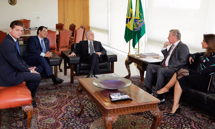 BRASÍLIA/DF - O prefeito Arthur Virgílio Neto, acompanhado do senador Eduardo Braga e do deputado federal Marcos Rotta, foi recebido no Palácio do Planalto nesta quinta-feira(1) pelo presidente da República, Michel Temer. A comitiva apresentou pautas referentes à captação de recursos para obras de infraestrutura na cidade de Manaus, além de verba para o recapeamento total do Distrito Industrial.