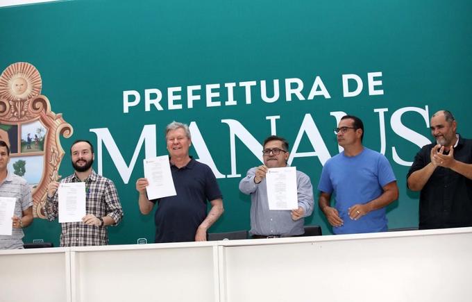 Manaus/AM - O prefeito Arthur Virgílio Neto divulgou nesta sexta-feira, 20, cinco leis que beneficiam servidores públicos municipais com recomposição salarial e data-base dos trabalhadores em Regime de Direito Administrativo (RDAs), reajuste de empregados públicos da administração direta e indireta e o Plano de Cargos, Carreiras e Remuneração (PCCR) dos servidores de áreas não específicas. A solenidade foi realizada no auditório Isabel Victória de Mattos Pereira do Carmo Ribeiro, na sede da Prefeitura de Manaus, Compensa, zona Oeste.