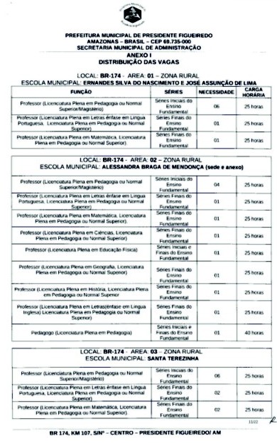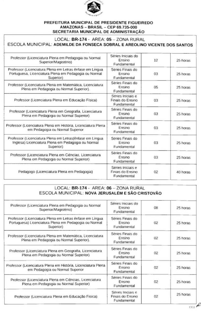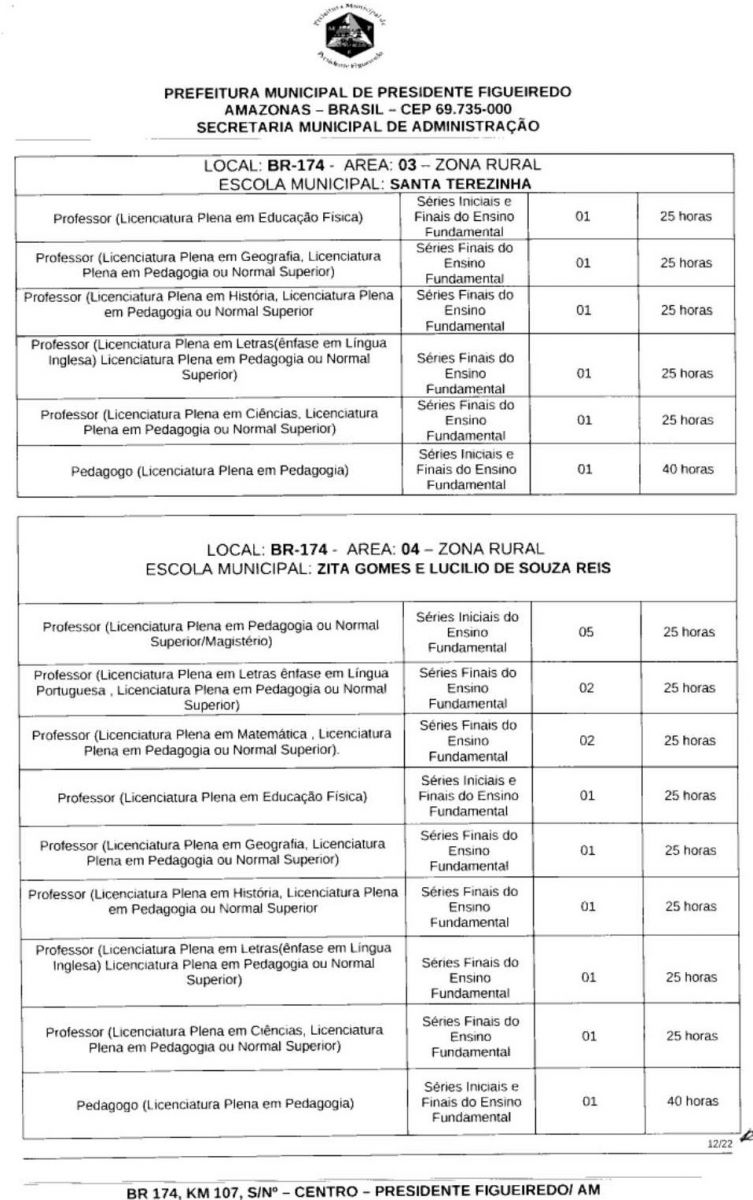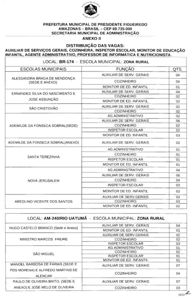O municipio de Presidente Figueiredo, a 110 quilômetros de Manaus, abriu inscrições para processo seletivo que visa contratar 500 funcionários para diversas áreas da administração municipal. Os salários variam de R$ 900 a R$ 5,2 mil.
