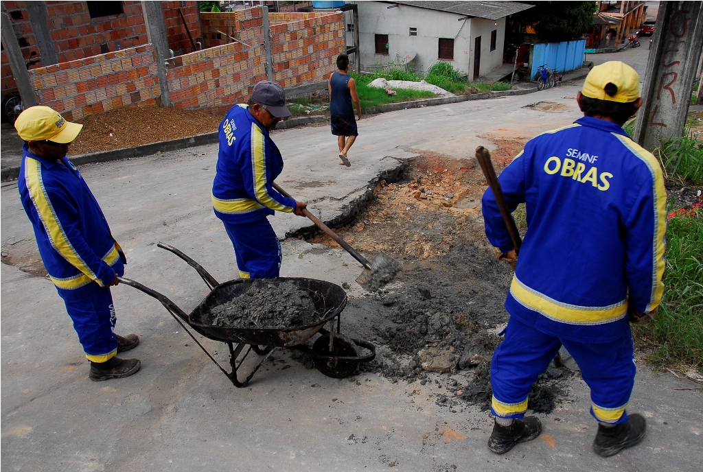 Na próxima semana, uma frente de trabalho com aproximadamente 20 homens utilizará uma tonelada de massa asfáltica na rua Tapajós, na esquina com a rua Zero. É a primeira vez que o local receberá ações de infraestrutura.