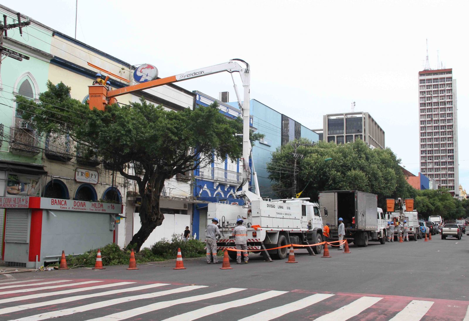 O trabalho está inserido nas ações de revitalização do Centro, intensificadas desde a última semana, a partir da realocação dos camelôs da área para os três camelódromos provisórios. O manejo da arborização também foi feito no trecho da Eduardo Ribeiro compreendido a partir da esquina com a avenida Sete de Setembro até o Relógio Municipal.