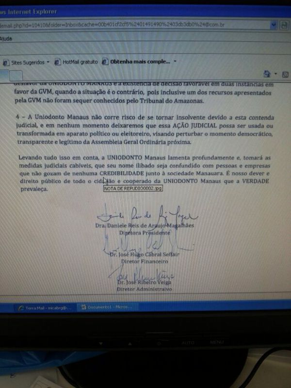 O Portal do Holanda publica, a seguir, a nota da Uniodonto e fac símile do contrato assinado pela atual presidente da Uniodonto, Daniele Reis de Araújo Magalhães com a empresa GVM, de propriedade de sua cunhada, Verônica Maria Moreira Magalhães.