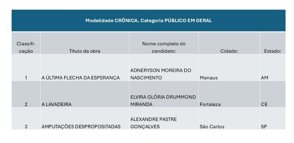 A competição, que atrai escritores de todo o Brasil, é conhecida por valorizar a literatura nacional e a produção de novos talentos. O trabalho de Adneryson Moreira destacou-se pela originalidade, sensibilidade e domínio da narrativa, confirmando o talento literário do professor manauara.