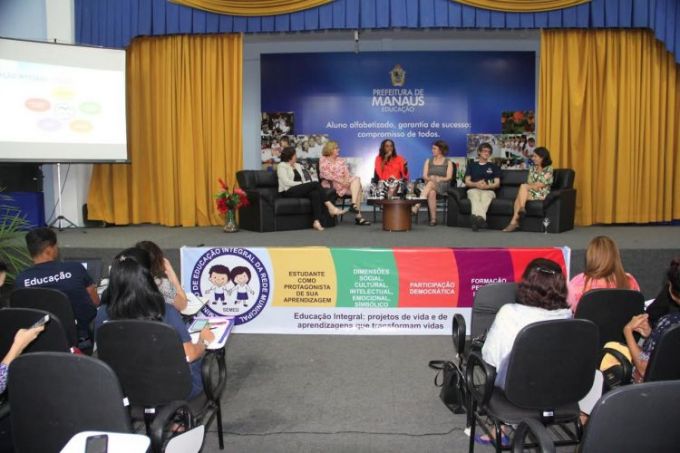 Manaus/AM - Uma mesa redonda, composta por profissionais de educação de todo o país, encerrou os debates sobre Educação Integral, nesta segunda-feira, 12, no auditório da Secretaria Municipal de Educação (Semed), na Avenida Mário Ypiranga Monteiro, bairro Parque Dez, zona Centro-Sul. Durante as discussões, foram apresentadas experiências bem sucedidas e feitas avaliações sobre a maneira como a rede municipal vem desenvolvendo a modalidade de ensino.