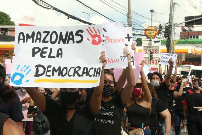 Manaus/AM – Manifestantes estão reunidos neste momento na Avenida Djalma Batista, na zona-centro sul da capital. O grupo, formado na maioria por jovens, protesta em prol da democracia e também do antirracismo, movimento que ganhou a adesão em vários países e cidades brasileiras.
