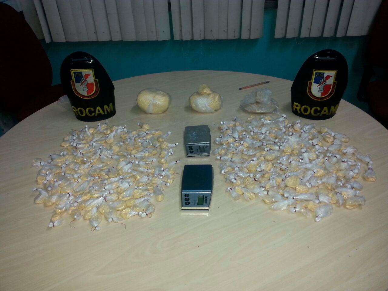 Ao chegarem no local, os militares se depararam com um forte cheiro de entorpecentes. Quando entraram no lugar apreenderam 800g de pasta base de cocaína, 345g de oxi, 125 trouxinhas de oxi e 240 de pasta base de cocaína e duas balanças de precisão.