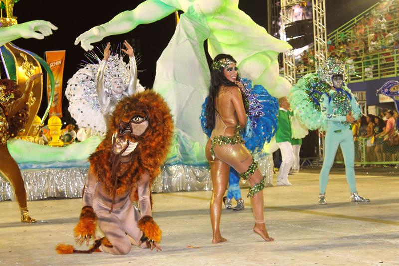 Manaus/AM - O desfile da escola de samba REeino Unido da Liberdade, oitava a desfilar no samódromo na madrugada deste domingo, teve in~icio às 3h20 e fez os foliões que torcem pela escola do Morro da Liberdade darem um show quando a reino foi anunciada.