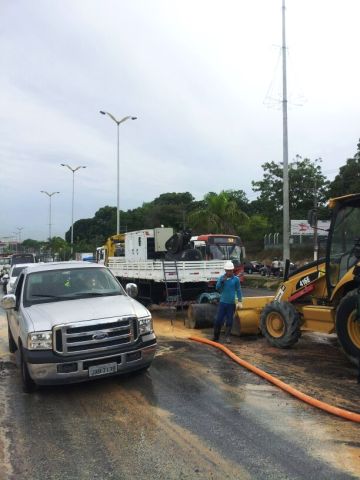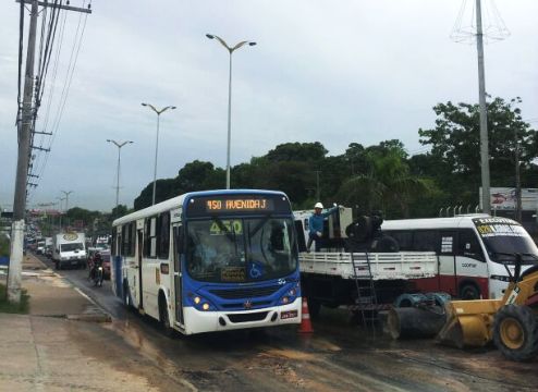 Manaus/AM - Técnicos da Manaus Ambiental foram deslocados para avenida Torquato Tapajós, por volta das 16h, para solucionar rompimento de adutora nas proximidades do Playboy Motel. O trânsito, no sentido Centro/bairro, às 16h40, apresentava congestionamento de cerca de dois quilômetros. A estimativa da concessionária é de que o trecho seja liberado por volta das 22h