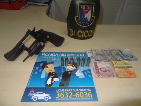 Os policiais foram até o local informado e encontraram o suspeito com as características informadas, após a abordagem foi encontrado com mesmo, um revólver calibre 38, com seis munições intactas, R$ 100 e um celular. Daule Souza Cavalcante foi apresentado no 3º Distrito Integrado de Polícia (DIP).