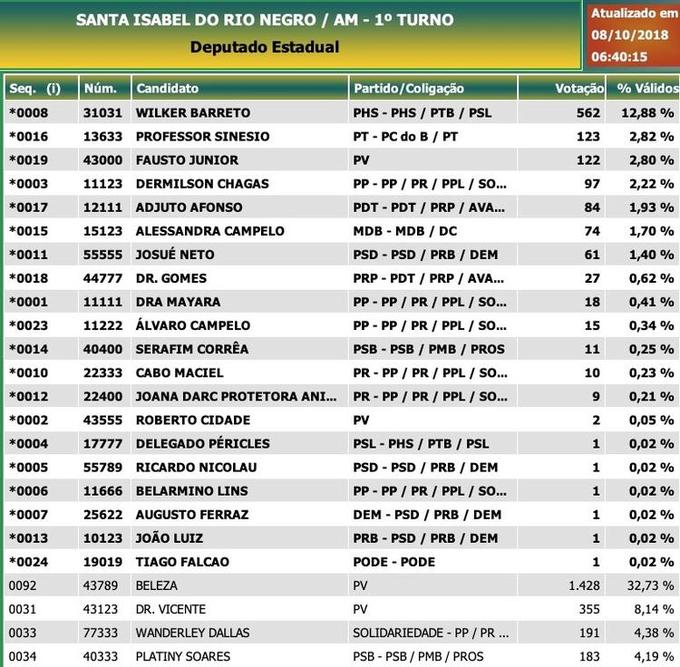 Início Amazonas Santa Isabel do Rio Negro: Deputados estaduais - candidatos mais votados