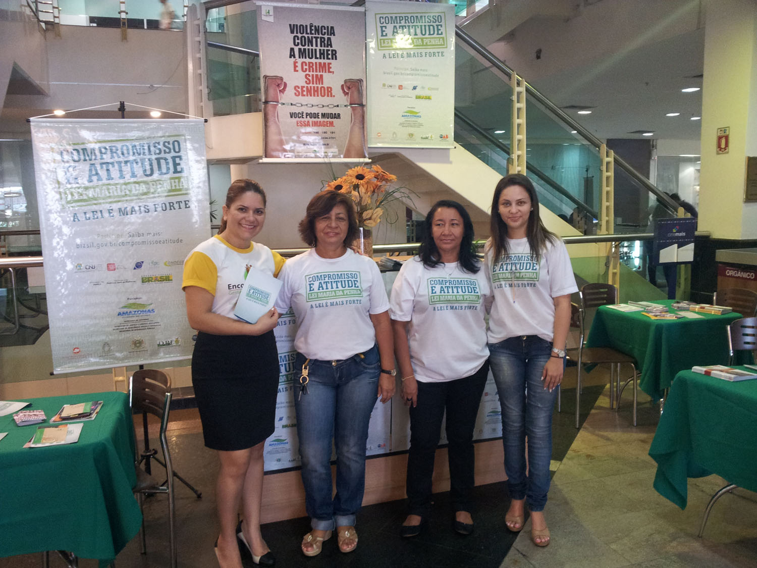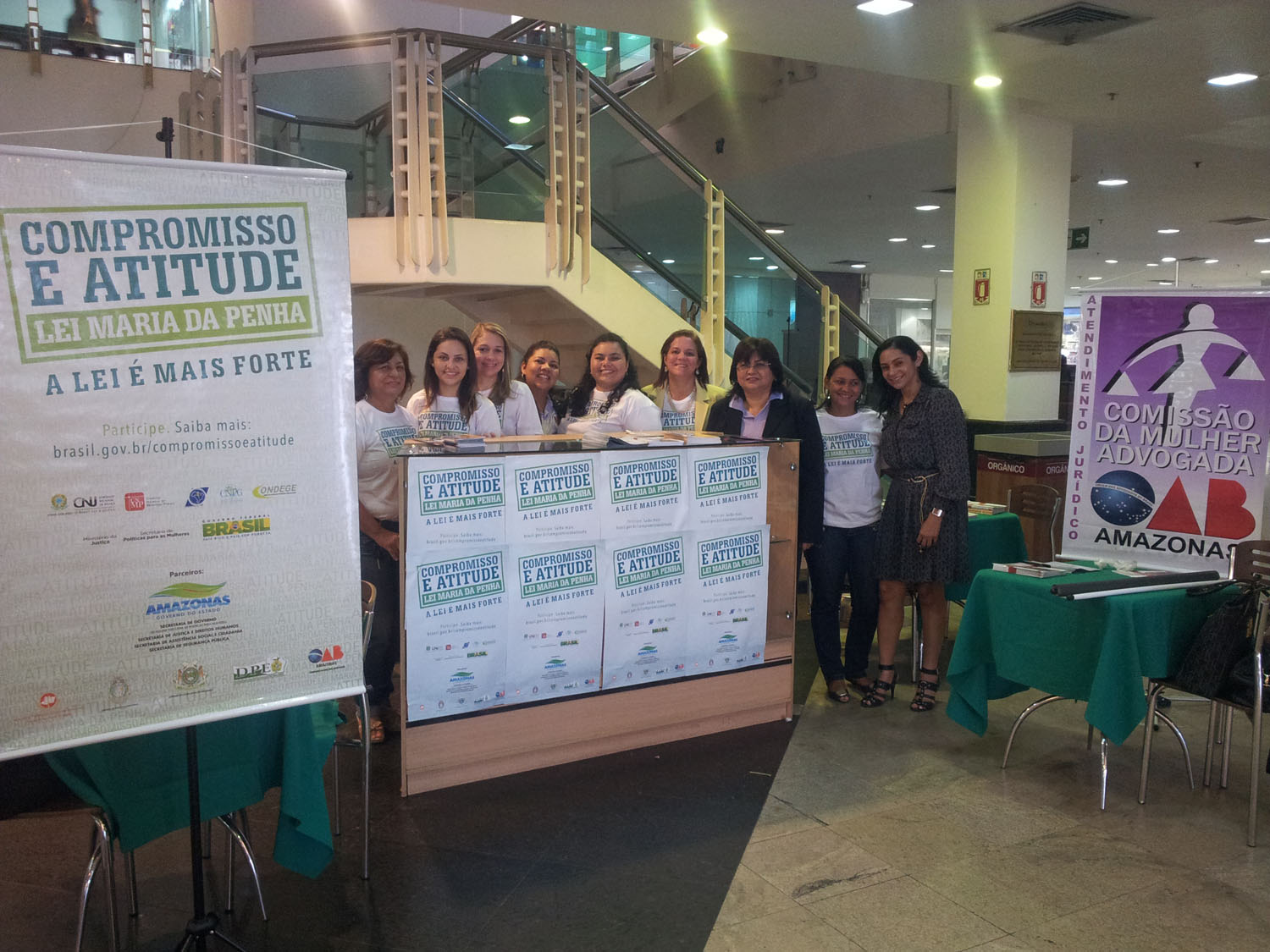 No estande, estão os parceiros da campanha “ Compromisso e Atitude pela Lei Maria da Penha ” como o Tribunal de Justiça do Amazonas, Defensoria Pública, Ordem dos Advogados do Brasil seção Amazonas, Secretaria de Segurança Pública, Secretaria de Justiça, Ministério Público e Assembleia Legislativa do Estado.