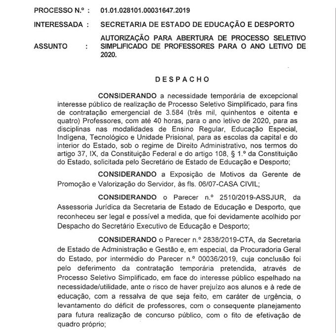 Manaus/AM - A Secretaria de Estado de Educação e Desporto, antiga Seduc, foi autorizada pelo governo do Amazonas a realizar processo seletivo que visa contratação emergencial de 3.584 professores para o ano letivo de 2020. Os profissionais devem atuar por até 40 horas semanais no ensino regular, educação indígena, tecnológica e em unidades prisionais em Manaus e interior do Estado.