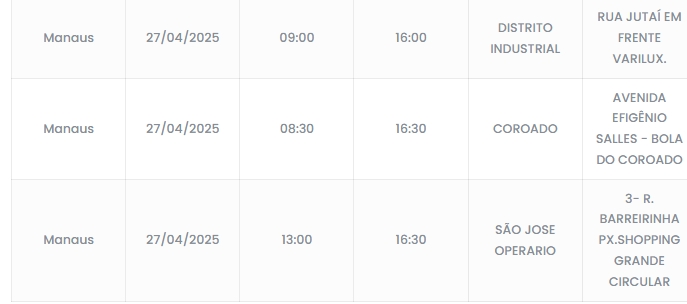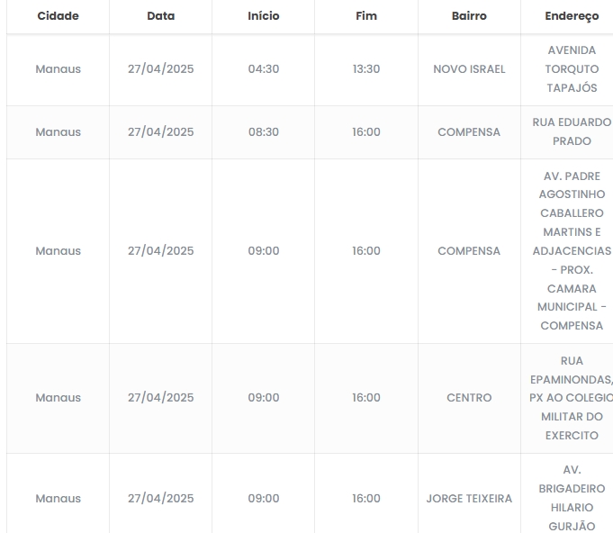 Manaus/AM - Seis bairros ficarão sem energia neste domingo (27), por conta do cronograma de desligamento programado que deve acontecer em pontos distintos de Manaus. Novo Israel, Compensa, Jorge Teixeira e outros estão entre os locais afetados. Confira: