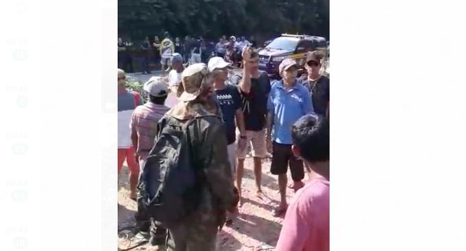 Nesse momento, motoristas estão enfileirados e são impedidos de passar. A Polícia Rodoviária está no local e tenta negociar o desbloqueio, mas os manifestantes garantem que não vão sair até que tenham uma resposta.