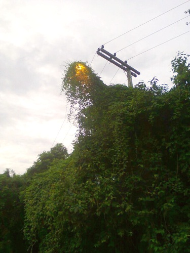 Sem podagem, trepadeira toma conta de poste e ofusca luz