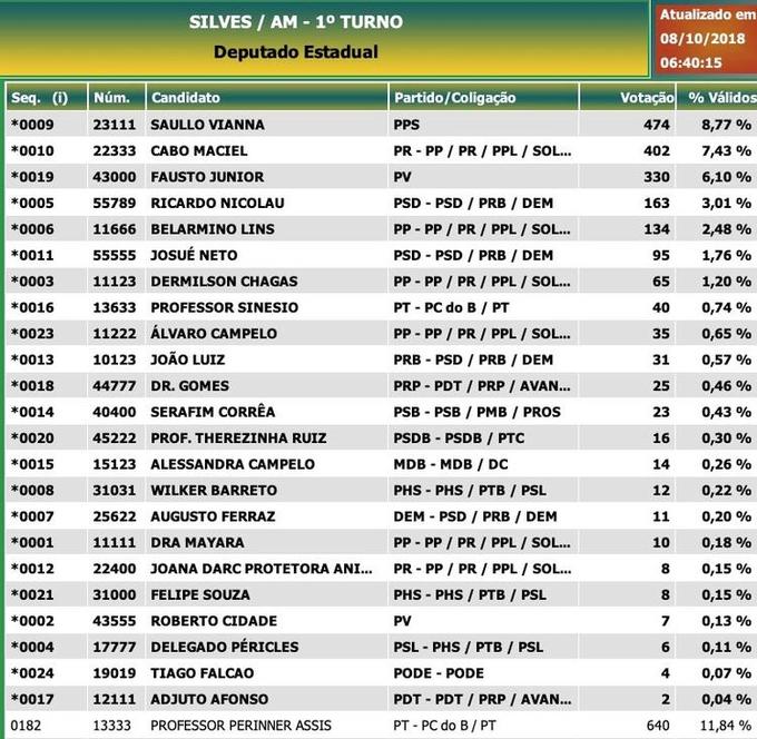 Início Amazonas Silves: Deputados estaduais - candidatos mais votados