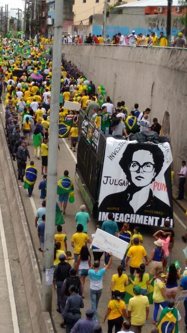 Manaus/AM - Cerca de 2,500 pessoas se concentraram na Praça do Congresso, no centro da cidade, por volta das 10h30 da manhã deste domingo, 12, em protesto ao governo Dilma Rousseff.