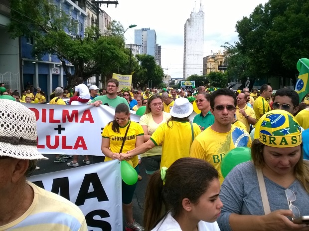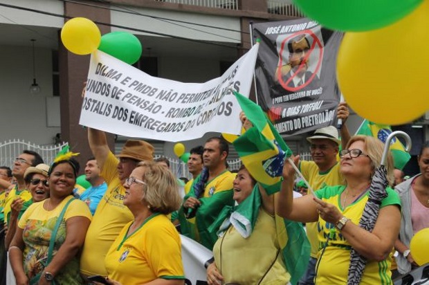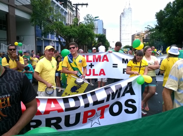 Faixas de "Fora Dilma", pedidos de investigação sobre os bilhões que a corrupção levou da Petrobras e pedidos de impeachment da presidente foram exibidos pelos manifestantes, além de pronunciamentos no carro som com a mesma tônica.