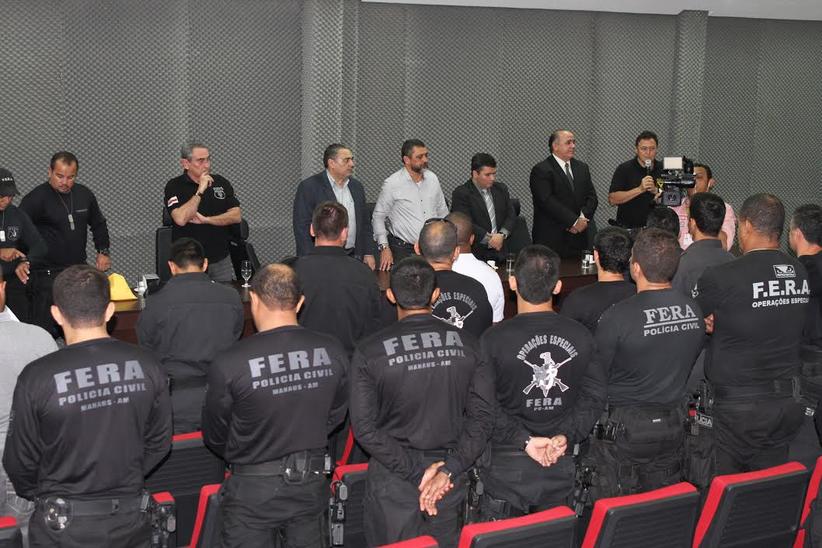 Manaus/AM - Na tarde desta segunda-feira, dia 28, por volta das 15h, policiais civis que atuam no Grupo Força Especial de Resgate e Assalto (Fera) prepararam uma solenidade alusiva aos 16 anos de criação da equipe de elite no Estado, comemorados ontem, domingo. O evento ocorreu no auditório da Delegacia Geral, situada na Avenida Pedro Teixeira, nº 180, bairro Dom Pedro, zona Centro-Oeste.