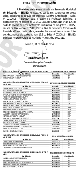 A classificação final foi gerada a partir da soma do coeficiente escolar e da prova discursiva, dividida por dois, e após a análise dos recursos.