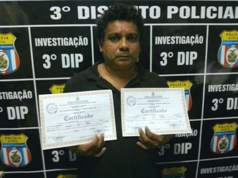Manaus/AM - Lúcio Rocha do Nascimento, 50, técnico de equipamentos de informática, 50, foi preso na rua Antonio Passos de Miranda, em Petrópolis, Zona Sul, em flagrante quando tentava passar documentos falsificados para terceiros.