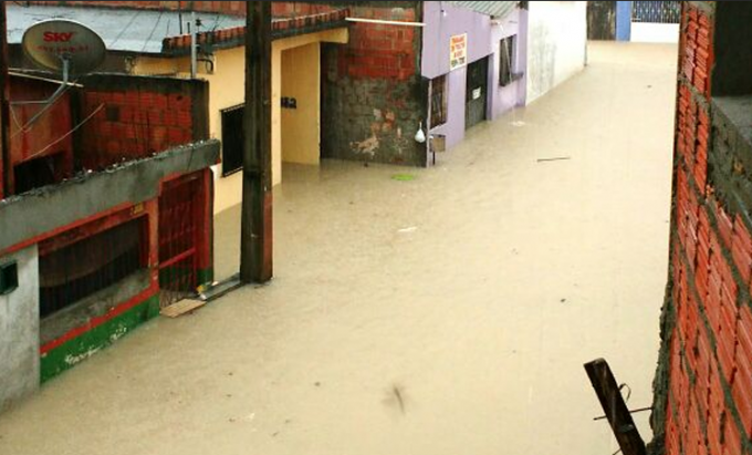 Residências na Comunidade da Sharp totalmente alagadas. Foto: Leitor/Portal do Holanda