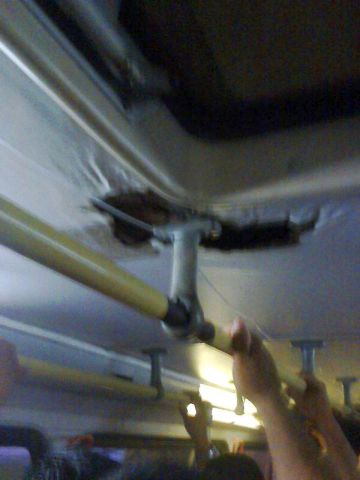 Manaus/AM - Quem necessita usar esse ônibus da linha 419, da Zona Leste, não sabe se ganha segurança ou se segura a estrutura do ônibus que deveria ser suporte e garantir o transporte seguro do passageiro. Uma freada mais brusca e vai todo mundo pro chão, se tiver espaço no abarrotado coletivo.