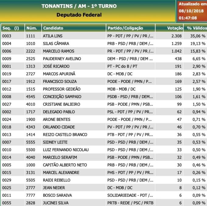 Tonantins: Deputados federais - candidatos mais votados