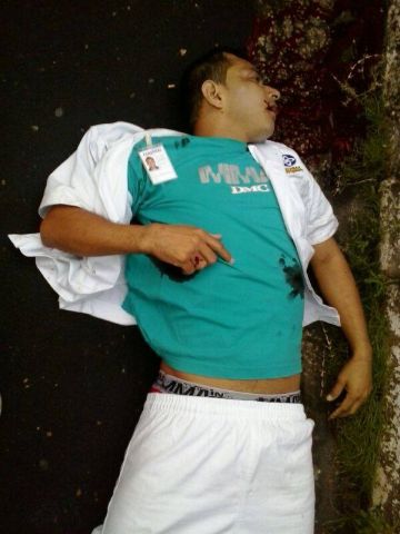 De acordo com informações de testemunhas, a vítima agonizava depois de ser baleada com tiros na cabeça e no abdômen, possivelmente com uma pistola de calibre 40, às 6h, e deveria estar sofrendo de hemorragia crítica enquanto aguardava o socorro do Samu, que o removeu.