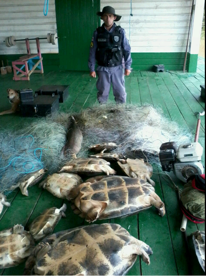 Policiais Militares e Ambientalistas do Instituto Chico Mendes, localizado no município de Lábrea, apreenderam 18 quelônios, entre tartagura e tracajá, além de 04 canoas, 02 motores rabeta, 90 malhadeiras, 04 arrastões e alguns pirarucus, na reserva do Abufari. Segundo a polícia, as apreensões contabilizadas são resultado de três dias de fiscalização voltados para coibir e ao mesmo tempo prender traficantes de quelônios que atuam, clandestinamente, na área de reserva que fica entre os municípios de Labre e Tapauá. A operação percorreu praias e lagos dos entornos da localidade.