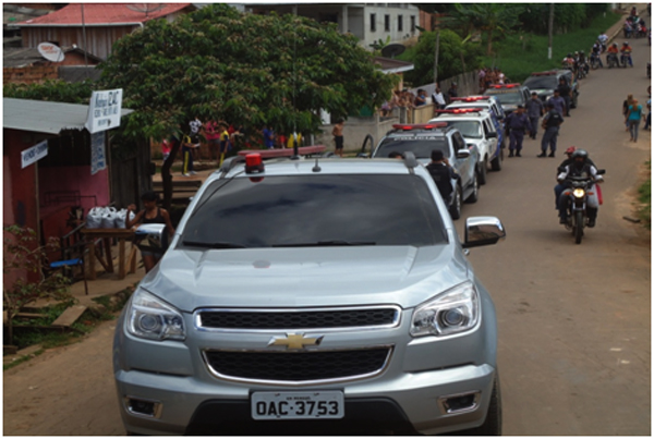 Policiais do 5° Batalhão de Polícia Militar de Coari prenderam Jorge Souza e Souza, o “Banguelo”, 42 anos; Raimundo Souza e Souza, o “Ventão”, 34 anos, Douglas Soares Tavares, 19 anos, e o um adolescente de 16 anos.