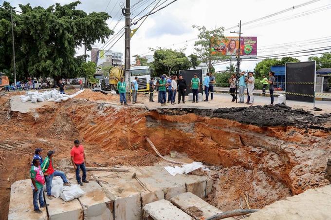 “Nossa meta é finalizar a troca da tubulação e aterrar a área ainda neste sábado, já liberando o fluxo, e até o domingo também concluir o recapeamento da faixa danificada da via”, explicou o prefeito, durante visita à obra acompanhado da primeira-dama e presidente do Fundo Manaus Solidária, Elisabeth Valeiko Ribeiro. Ele também destacou a pronta-resposta da Secretaria Municipal de Infraestrutura (Seminf), que tão logo houve a ocorrência em pouco tempo já estava com equipe atuando no local.
