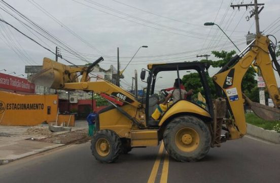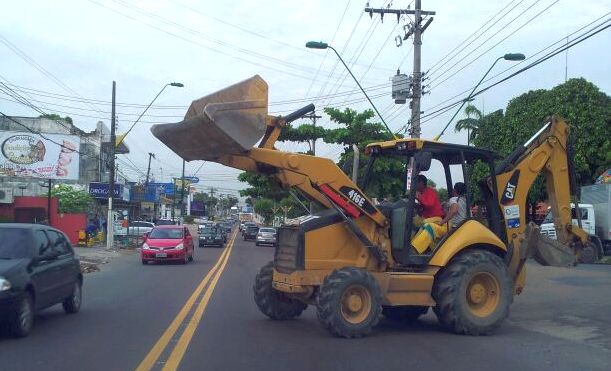 Manaus/AM - Trator manobra na avenida Pedro Teixeira, no bairro D. Pedro 2º, em frente à praça de alimentação, na manhã desta sexta-feira, 24. Falta fiscalizar e punir.