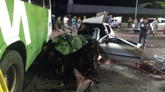 Manaus/AM - Uma pessoa morreu e mais três ficaram feridas na noite desta sexta-feira (23) vítima de um acidente entre um ônibus e um carro em um cruzamento da avenida Constantino Nery, bairro Flores, zona Centro-Sul.