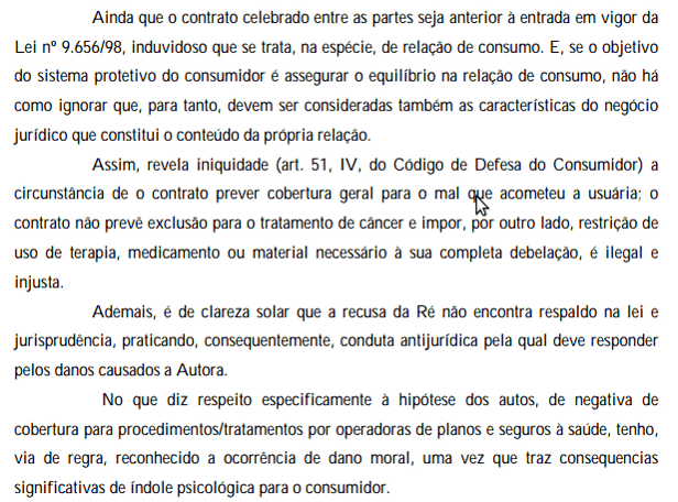 A professora aposentada recorreu à Justiça depois que a Unimed se negou a autorizar a realização de tratamento médico para o diagnóstico de um câncer (Adenocarcinoma de Endométrio) e ingressou com ação de obrigação de fazer e indenização por danos morais pelo constrangimento que ela sofreu.