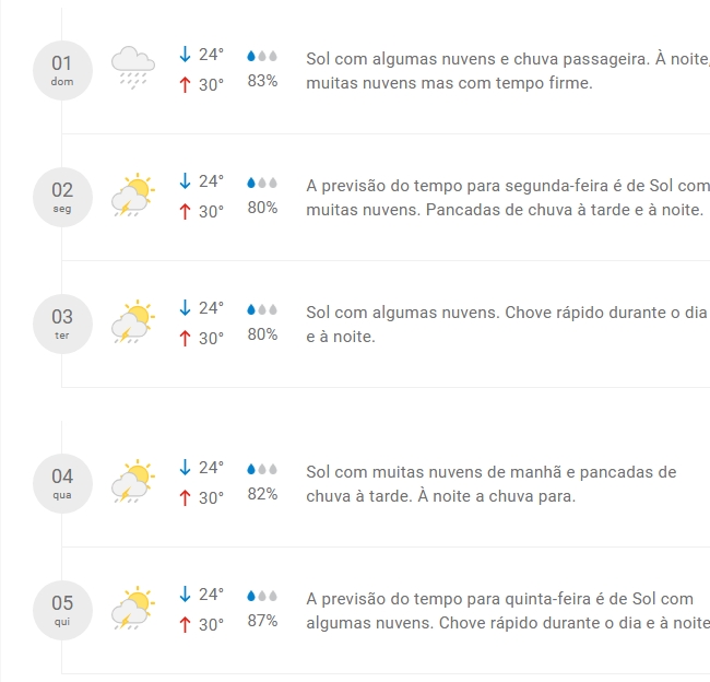 Mas, afinal, como ficará o tempo na primeira semana deste mês? Confira abaixo: