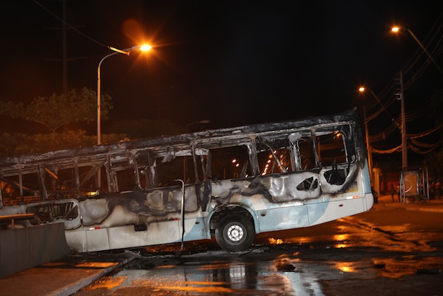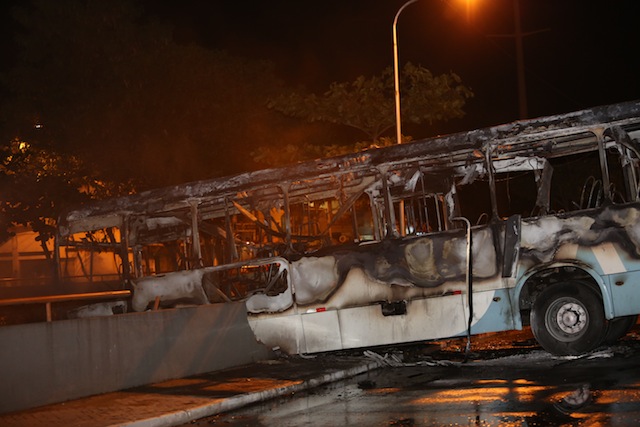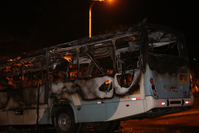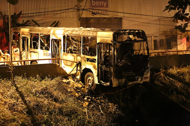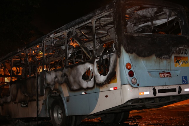 Veja como ficou o ônibus incendiado por vândalos em Manaus