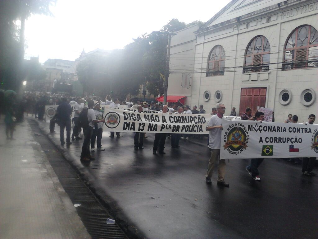 A segunda manifestação, promovida pela Maçonaria era contra a corrupção e, mesmo com a chuva, tomou as ruas do Centro. Confira: