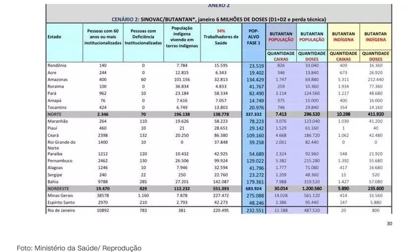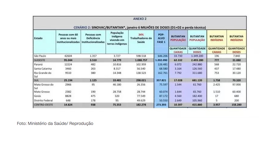 *O plano de vacinação apresentado pelo Governo, não leva em consideração as doses da Coronavac doadas pelo Governo de São Paulo.