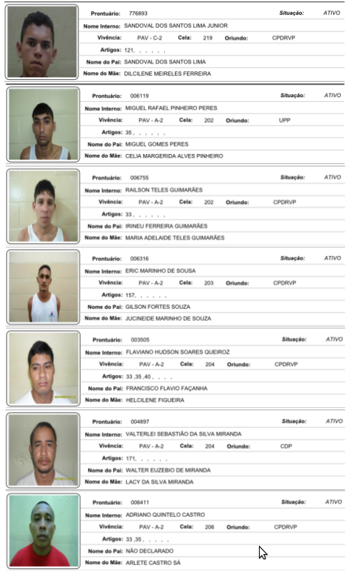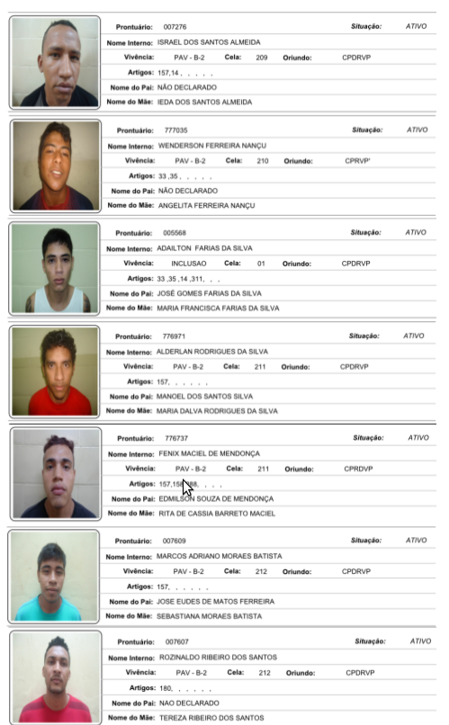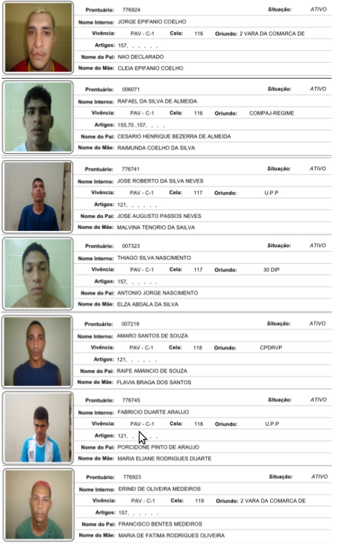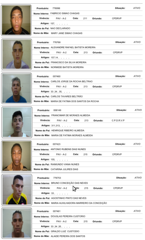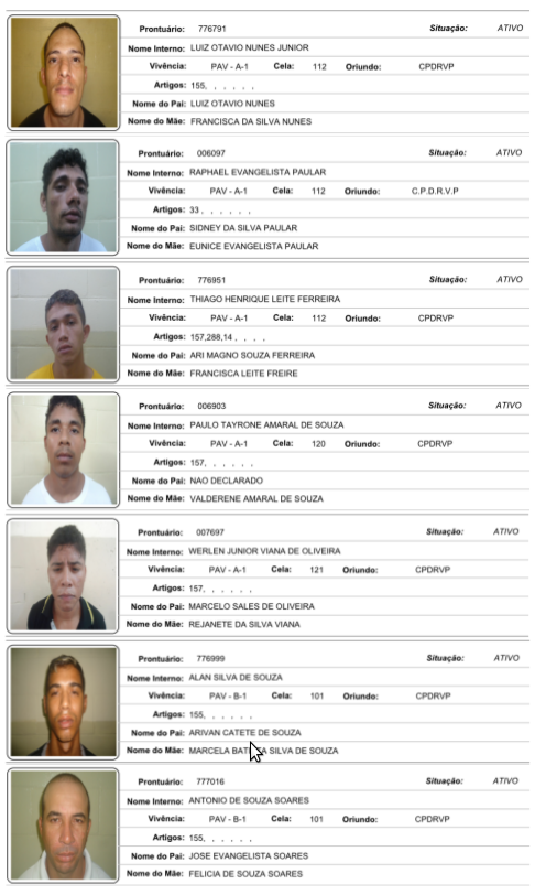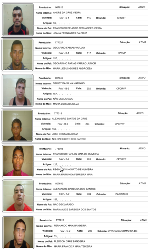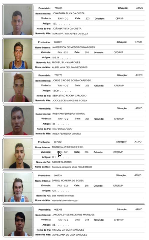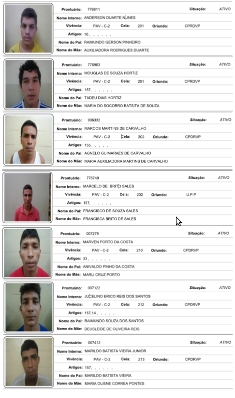 VEJA FOTOS: Conheça e ajude a localizar todos os presos que fugiram do Ipat