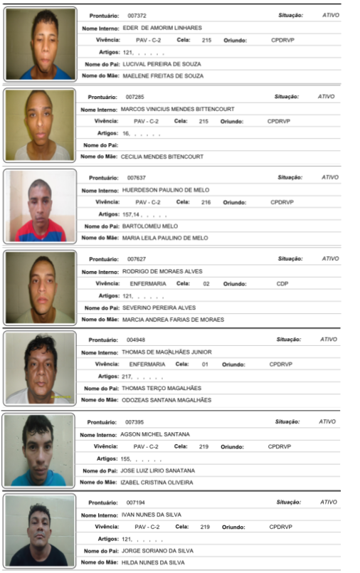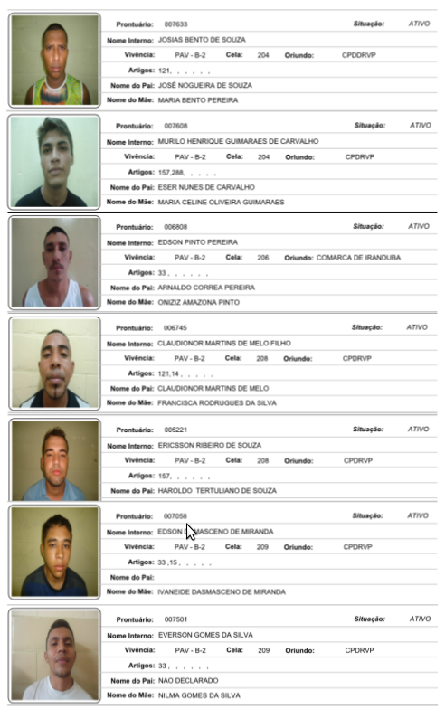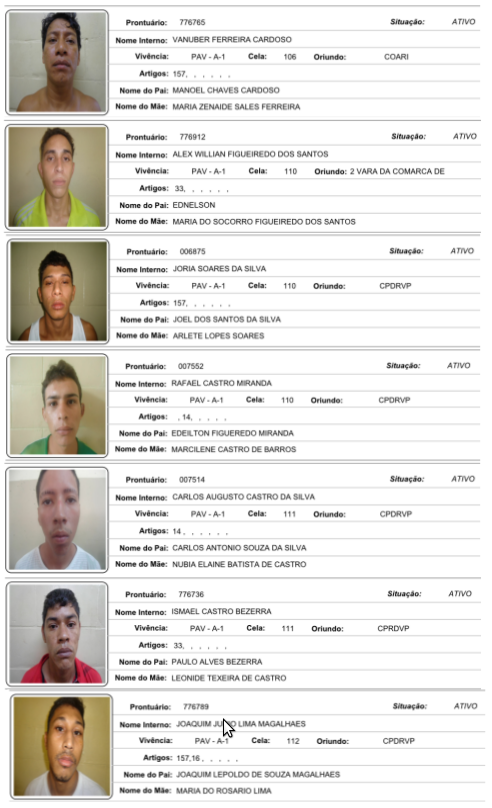 Início Amazonas VEJA FOTOS: Conheça e ajude a localizar todos os presos que fugiram do Ipat