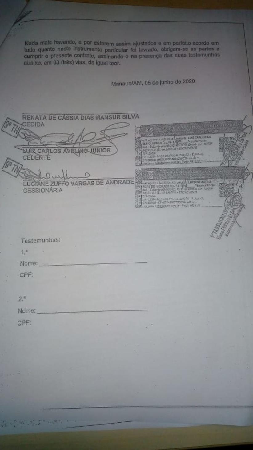 A secretária apresentou ainda durante a coletiva, documentos que comprovariam o rompimento de contrato do marido com a empresa citada.
