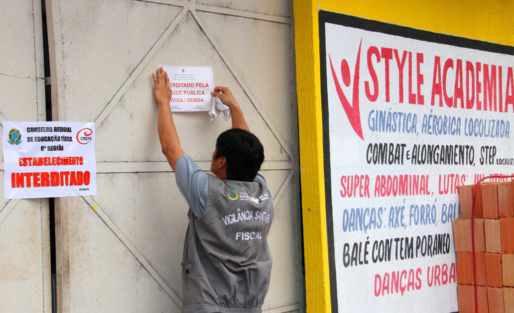 Três academias foram interditadas nesta sexta-feira, 12, em Manaus, em blitz realizada pelos fiscais da Vigilância Sanitária do Município (Visa Manaus), em parceria com o Conselho Regional de Educação Física do Amazonas - Cref 8ª Região. Entre as irregularidades encontradas estão aparelhos enferrujados, falta de licença sanitária, ausência de registro e do profissional de Educação Física e até águas paradas com larvas do mosquito Aedes Aegypti na garagem da Style Academia, localizada na rua Barão de Jaceguai, 757, no Parque das Laranjeiras.