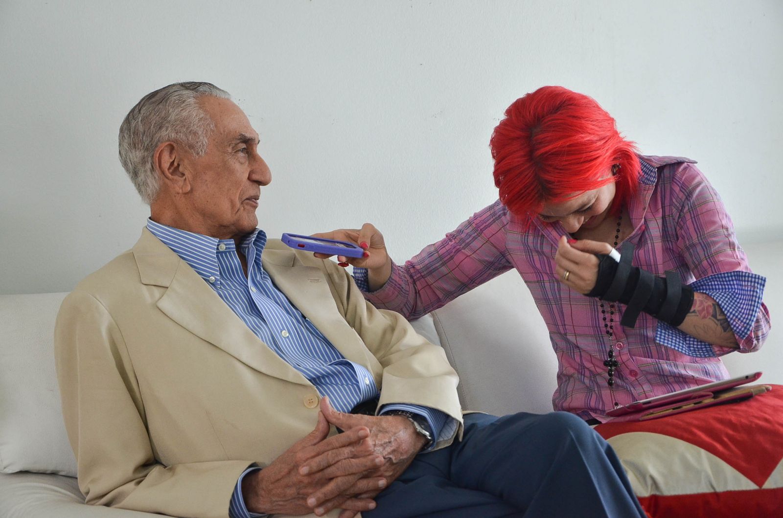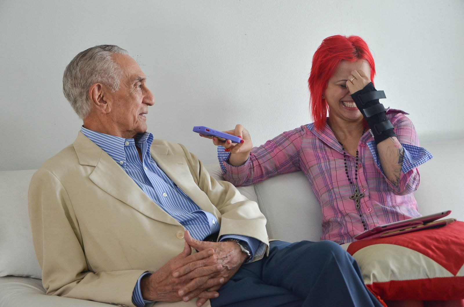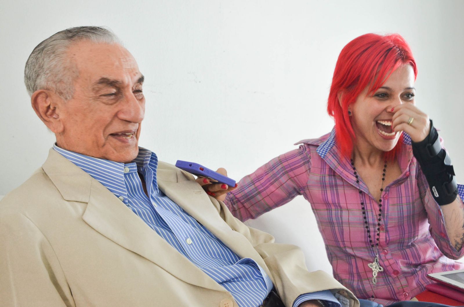 Carlos Braga é filho de Santarém, nascido nos anos 20, virginiano, empresário, conselheiro político e um homem bastante influente. Ele é devoto de Nossa Senhora da Conceição, não gosta de meter o nariz na vida dos filhos e condena o uso do Viagra. De uma franqueza que lhe é peculiar, de cara pediu pra eu bater a “chapa” de um quadro dele na sala de estar. Fiquei 2 minutos tentando imaginar o que era chapa. Quando fizemos nossas fotos juntos ele disse assim: “Essas fotos vão me comprometer”. Ele quis me driblar de todo jeito negando que tenha sido um namorador, me disse também que perdeu a virgindade logo cedo e assumidamente falou dos filhos fora do casamento. Não esconde que tem orgulho de seu filho político, mas contesta veemente quando o chamam de pai coruja. É uma pessoa direta, sem rodeios, consistente em suas palavras. Ao final de cada resposta que dava soltava uma risadinha que me fazia rir mais ainda. Por vários momentos eu fui a entrevistada dele, e vou confessar, me contive nos palavrões pela primeira vez na minha vida. Já pensou levar um toco só porque tenho a boca frouxa? Ah, ele me confessou que os desafetos vão ter inveja da minha entrevista com ele. MORRI# \o/ vida longa, Seu Carlos. Você é um fofo. E olha que ainda pensei que fosse entrevistar um rabugento!!!!!!!!!! Beijos, boa semana.