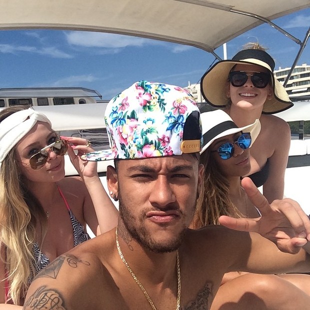 O craque publicou em seu Instagram uma foto em que aparece no iate ao lado de duas loiras e a irmã, Rafaella.